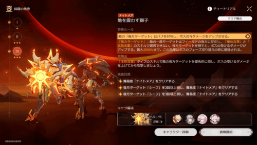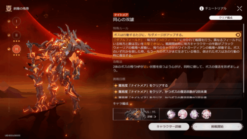 ボスの割り当ては弱点の関係でブラックにキャストリス、ホワイトに長夜月が当たるようにして、キュレネとヒアンシーは好きな方で。