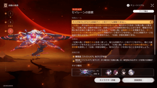 早速当てにならない編成例ですが、完凸モーディスとキュレネを組み合わせたパーティでクリアしました。